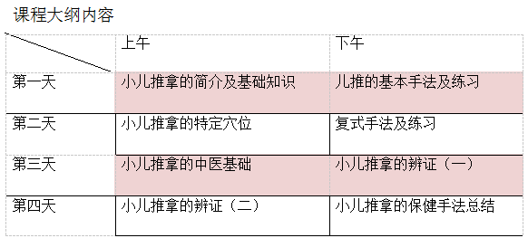 (以下附上小儿推拿宝妈奶爸班课程大纲)